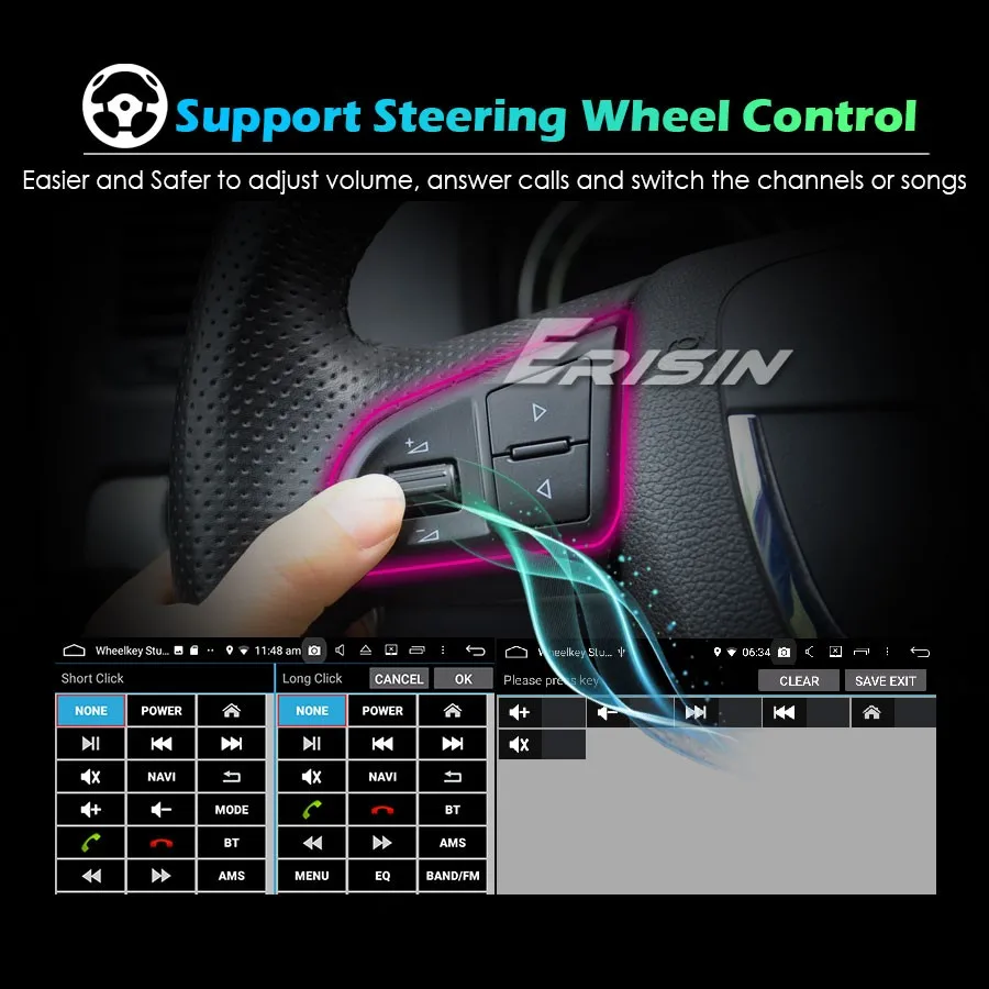 -Поддержка управления рулевым колесом, легче и безопаснее регулировать громкость, отвечать на звонки и переключать песни во время вождения.