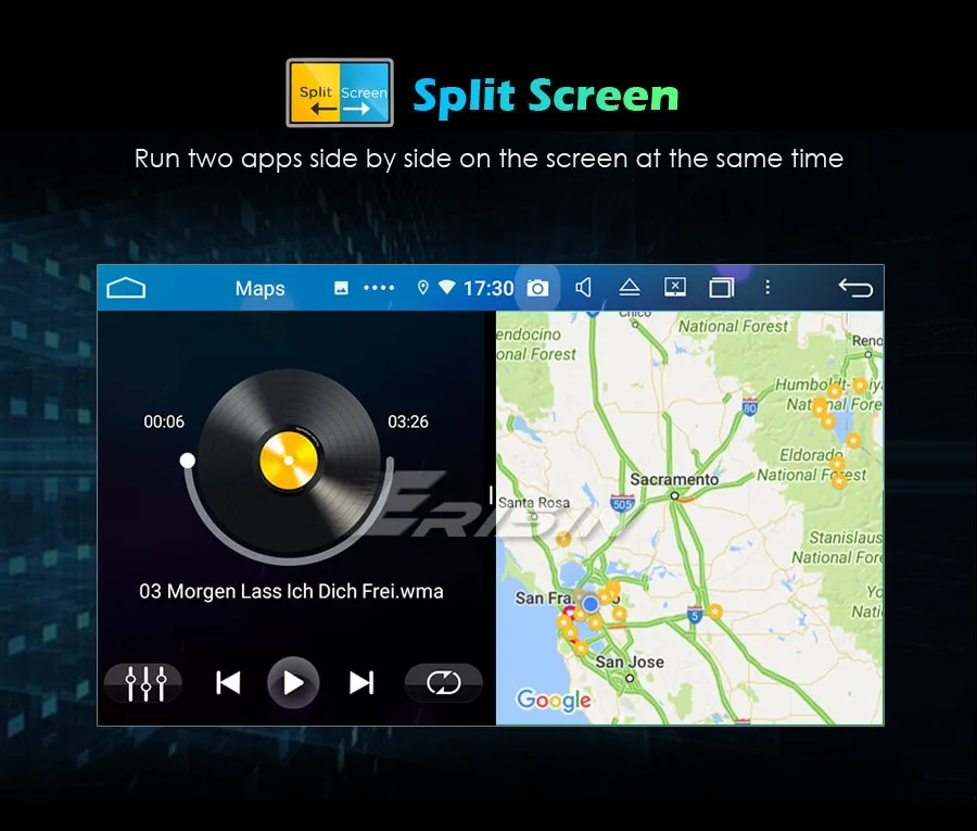 -Встроенный мультимедийный плеер Android, может воспроизводить музыку/видео/фото с локального диска или USB/TF.