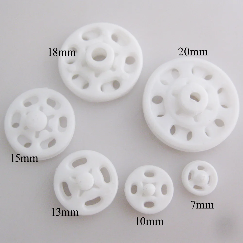 Круглые пластиковые кнопки. 7 мм/10 мм/13 мм/15 мм/18 мм/20 мм. Один цвет: Топ 300 шт. + низ 300 шт. = 300 комплектов. Смешанные цвета: белый/черный/прозрачный каждый 100 комплектов. Если вы хотите отправить ваше количество, пожалуйста, оставьте сообщение, Например: белый 100 комплектов и черный 200 комплектов. Мы организуем по вашему желанию.